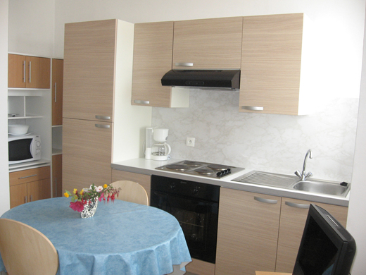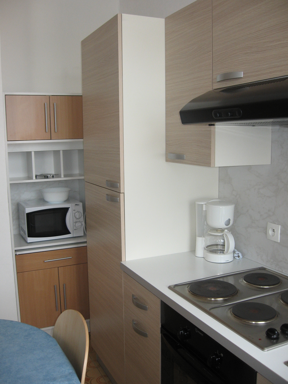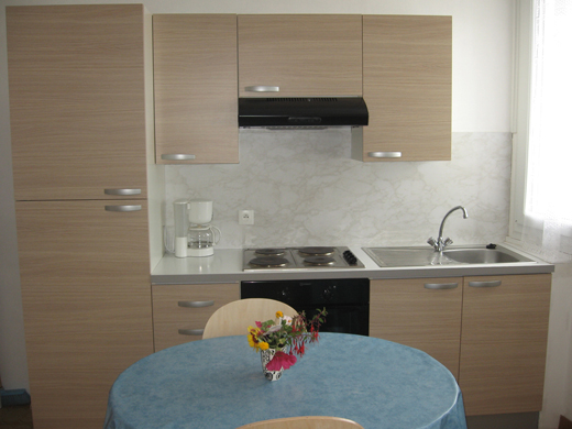 Salle de bains avec douche, lavabo et WC. Coin cuisine équipé avec 4 plaques électriques, un réfrigérateur, un congélateur, un four, une cafetière et un micro-ondes. Couchage : canapé convertible BZ de 160 (pliable en 3 parties) et lit pliant de 90. Table avec 2 chaises (et 2 autres pliantes). Télévision avec TNT intégrée. Cave disponible pour vélos.