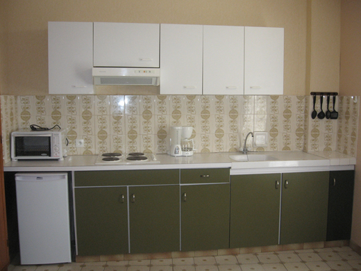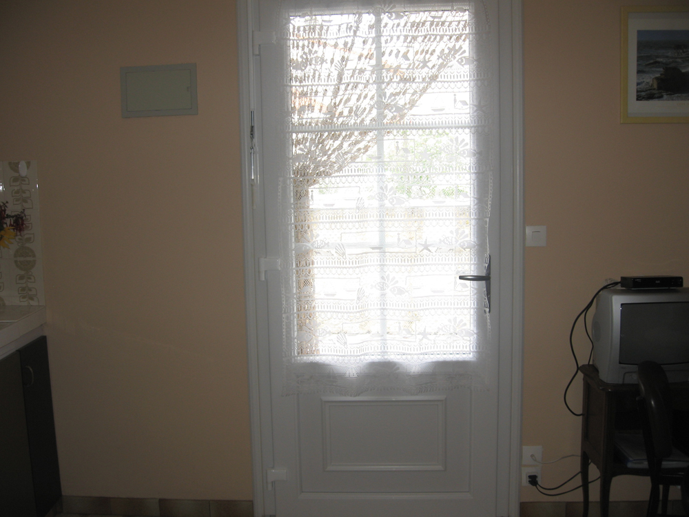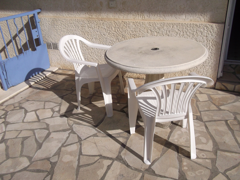 Salon de jardin avec 2 fauteuils et parasol. Terrasse. Salle de bains avec douche, lavabo et WC. Coin cuisine équipé avec 4 plaques électriques, un réfrigérateur, une cafetière et un mini-four. Couchage : lit rabattable de 130 avec penderie et rangement de chaque côté. Table avec 2 chaises. Télévision avec TNT. Cave disponible pour vélos.